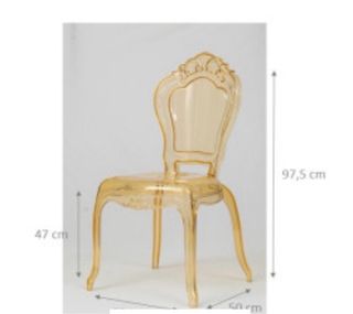 Elegante set di 4 sedie in policarbonato, perfette per aggiungere un tocco di classe a qualsiasi ambiente. Il design trasparente color oro dona luminosità e raffinatezza. - Materiale: Policarbonato resistente e durevole. - Finitura: Trasparente con sfumature dorate. - Quantità: Set di 4 sedie.