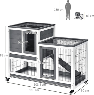 Conigliera in Legno a 2 Livelli con Ruote, Casetta