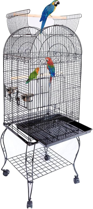 CASA SPAZIOSA: Dai ai tuoi amici pennuti lo spazio di cui hanno bisogno per muoversi comodamente e sbattere le ali. Questa gabbia per uccelli all'interno contiene quattro posatoi di legno e quattro vassoi di plastica per il cibo. ACCESSO FACILITATO: Questa voliera per pappagalli è dotata di 2 grandi porte anteriori, 4 porte laterali per il cibo, sarai in grado di accedere facilmente al cibo del tuo uccello, all'acqua e all'area interna. FACILE DA PULIRE: Il vassoio estraibile sul fondo è progettato per raccogliere gli escrementi degli uccelli, essendo facile da estrarre per la pulizia. Questa gabbia per uccellini con supporto rende