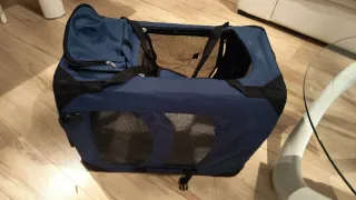Trasportino morbido per cani, ideale per viaggi o spostamenti. - Realizzato in tessuto resistente. - Dotato di finestre in rete per la ventilazione. - Chiusura con cerniera. - Maniglie per il trasporto.