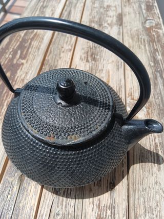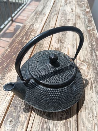 Bellissima teiera in ghisa di fattura giapponese. Ideale per una cerimonia del tè tradizionale o per un uso quotidiano. - Presenta una superficie leggermente ruvida e un design elegante. - Perfetta per preparare tè pregiati. - Manico ergonomico per una presa comoda.