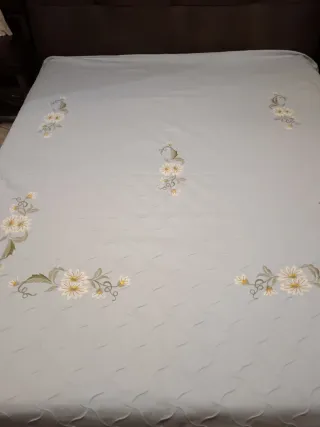 Elegante tovaglia in lino con ricami floreali fatti a mano. Perfetta per aggiungere un tocco di raffinatezza alla tua tavola. - Ricami floreali dettagliati. - Tessuto in lino di alta qualità.