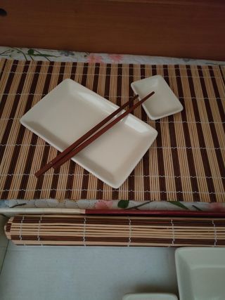 Set di tovagliette per la colazione NUOVE col cartellino - Realizzate con fibre di bambù intrecciate. - Bordi rifiniti in tessuto con un motivo decorativo. - Ideali per proteggere la superficie del tavolo.