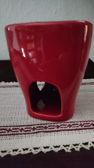 Fornelletto per fonduta di cioccolato. Da utilizzare con tea candel, posizionata nell' apposito spazio. Ceramica smaltata. Come da foto. Nuovo. Fondo di magazzino. Senza confezione. Vedere foto.