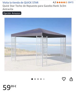 Gazebo con struttura in metallo e copertura in plastica. - Colore grigio e nero. - Ideale per uso esterno. Lo vendo perché mi trasferirò tra due mesi e dove andrò a vivere non ho un esterno. È nuovo. L'ho comprato nell'agosto 2025.