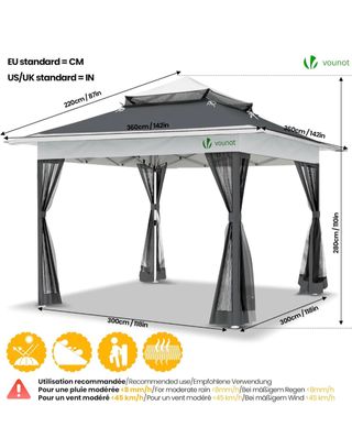 VOUNOT Tenda Pieghevole Gazebo 3,6x3,6m con Lati in Rete, Padiglione Pop Up da Giardino con Doppio Tetto