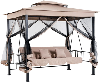 Gazebo Parasole da Giardino con Dondolo Letto e Za