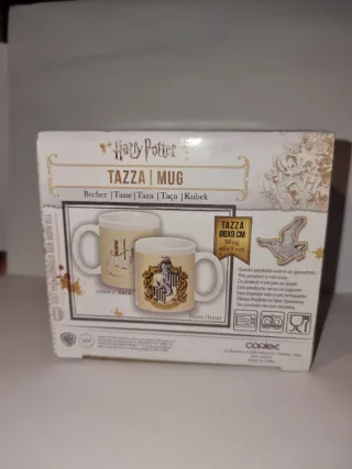 Tazza con stemma della casa di Hufflepuff, perfetta per gli amanti di Harry Potter. - Design con stemma Hufflepuff. - Colore beige e dettagli oro. - Nuova, mai usata.