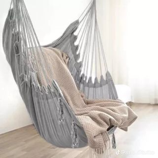Comoda amaca brasiliana, perfetta per rilassarsi. - Design a righe. - Tasselli decorativi sul fondo.