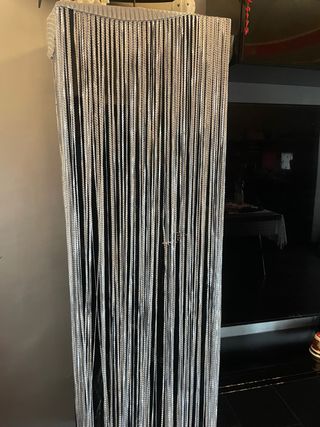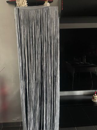 Tenda a filo in un elegante colore argento, perfetta per aggiungere un tocco di stile. - Misure: 1,50 metri di larghezza per 2,60 metri di altezza. - Materiale: Filo metallico lucido.