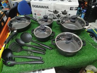Set di pentole e utensili da cucina DGBAVARIA. - 21 pezzi in totale. - Coperchi in vetro con manici. - Utensili da cucina inclusi.