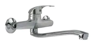 Pratico miscelatore monocomando con attacco fori al muro, ideale per bagno e vasche, ottimo anche per lavabi. Ideale come sostituzione del vecchio miscelatore, vi basterà fissarlo. Attacco a muro per gli attacchi di acqua calda e acqua fredda. Altezza: 12 cm Lunghezza beccuccio: 25 cm Dimensioni totali 180mm x 130mm Dimensioni totali con becco agganciato:225mm x 130mm