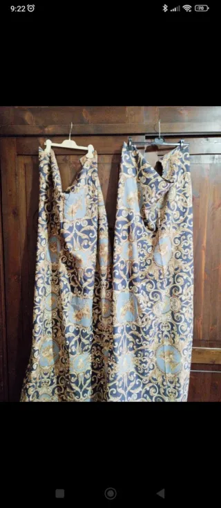 Queste tende presentano un design ricercato con un motivo damascato in tonalità blu e oro. Handmade - Tessuto di alta qualità. - Motivo damascato elaborato. - Colori blu e oro.