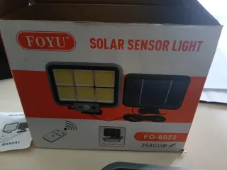 Lampione solare con pannello separato e telecomando. - Modello FO-8022 294COB. - Pannello solare incluso. - Telecomando per il controllo. - Sensore di movimento integrato.