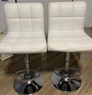 Set di due sgabelli dal design moderno. - Seduta imbottita in ecopelle e trapuntata. - Base rotonda in acciaio cromato - Altezza regolabile. - girevole a 360 gradi - schienale e poggiapiedi