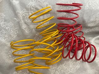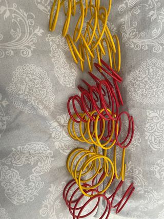 Set di porta bicchieri vintage con un design a molla. - Realizzati in metallo. - Colore rosso e giallo.