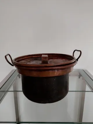 Un pentolone antico in rame, perfetto per la cucina. - Realizzato in metallo resistente. - Colore caldo che aggiunge un tocco rustico.