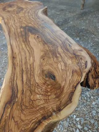 Panchina dal design unico con un piano in legno di ulivo e gambe in metallo. - Piano in legno di ulivo con venature naturali. - Gambe in metallo robuste ( sopporta oltre 300 kg di peso)