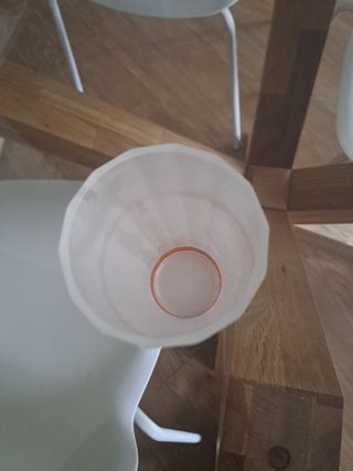Portacandela/ Bicchiere , dalla forma strana. In vetro, ha I segni di utilizzo visibili sulla base e in foto Altezza cm 10