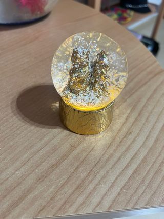 Deliziosa palla di neve a tema natalizio, perfetta per decorare la tua casa durante le feste. Al suo interno, albero e orso dorati immersi in una soffice nevicata scintillante. La base dorata aggiunge un tocco di eleganza. - Decorazione luminosa. - Design festivo.