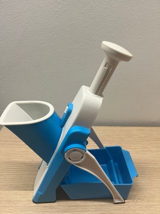Vendo affettatrice manuale per verdure, pratica e compatta, ideale per affettare rapidamente patate, zucchine, carote, cipolle e molto altro. ✔ Lama affilata ✔ Manopola per regolare lo spessore delle fette ✔ Contenitore raccoglitore incluso ✔ Spingitore di sicurezza per proteggere le dita ✔ Facile da smontare e pulire Usata pochissimo, in ottime condizioni. Perfetta per chi vuole risparmiare tempo in cucina senza usare elettricità. Incluso: Affettatrice Contenitore Imbuto / scivolo Spingitore