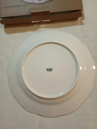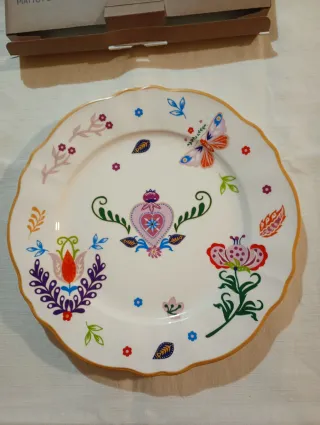 Elegante piatto da portata Bitossi con un design vivace e colorato. - Decorazioni floreali e farfalla. - Bordo ondulato con finitura dorata. - diametro 30,5 cm