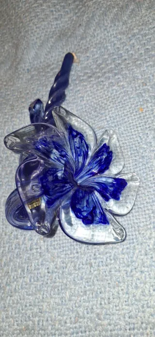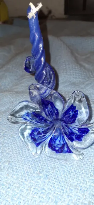 Elegante portacandela a forma di fiore, realizzato in vetro con sfumature blu e trasparenti. - Design floreale intricato. - Dettagli in vetro soffiato.