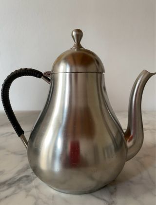 Teiera in Acciaio Satinato con manico nero cm 10 di diametro cm 20 di altezza GR. 0.794 Provenienza Olandese Real Pewter Den Haag ZOON MEEUWS Assicuro spedizione con imballo adeguato e protetto