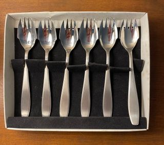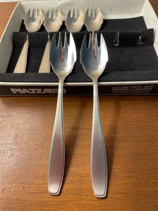 Set 6 forchettine dessert in Acciaio Manico Satinato Piazza Effepi Made in Italy cm 15 Ottime Condizioni con Confezione Originale Elegante set di sei forchettine da dessert. - Realizzate in acciaio lucido. - Design classico e raffinato. - Perfette per ogni occasione.