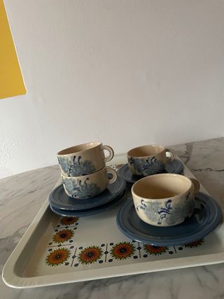 Set 4 tazze tea cappuccino in Ceramica Avorio, Sic Made in Italy dipinte a mano, con decoro floreale blu e piattino blu Tazza cm 9,5 di diametro cm 5 di altezza Piatti cn 16,5 di diametro Assicuro spedizione accurata con imballaggio ben protetto