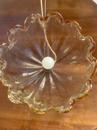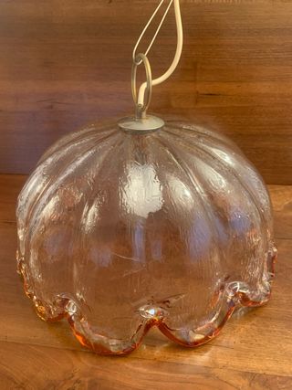 Elegante lampadario a sospensione firmato La Murrina, con un design unico. - Realizzato in vetro. - Colore arancio e trasparente. - Finitura ondulata sul bordo.