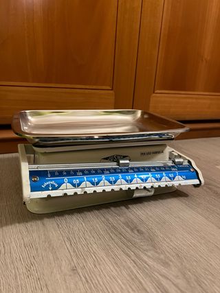 Bilancia da cucina vintage JUSWA, perfetta per la casa. Design classico/vintage.Ampio piatto in metallo. Scala graduata fino a 7 kg.