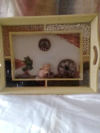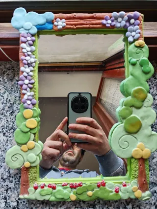 Delizioso specchio da tavolo con una cornice unica e colorata. Larghezza 19 cm altezza 30 cm