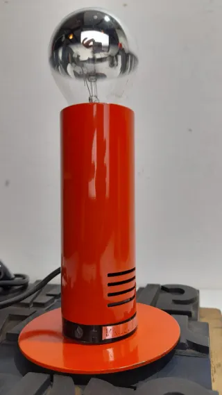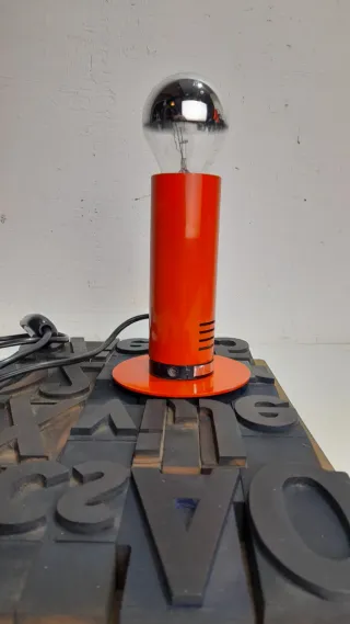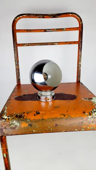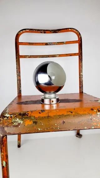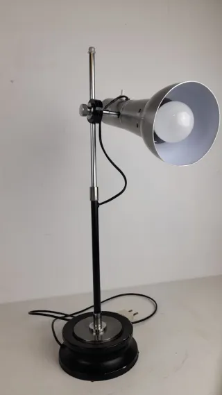Lampada da scrivania dal design iconico degli anni '70. Perfetta per aggiungere un tocco vintage alla tua postazione. - Struttura in metallo lucido. - Braccio flessibile per orientare la luce. - Base stabile e riflettente.