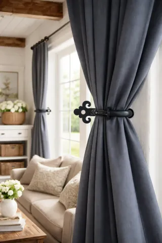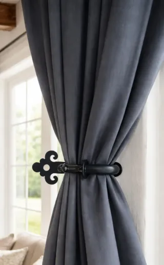 Elegante coppia di fermatenda da muro in metallo nero tipo ferro battuto Ideale per fermare tende lunghe ai lati della finestra Necessitano di tasselli NON compresi