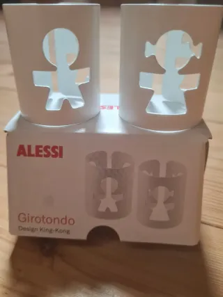 Set di portatovaglioli Alessi Girotondo, design King-Kong. Perfetti per aggiungere un tocco di allegria alla tavola. Nuovi - Design con sagome di bambini. - Realizzati in metallo. - Colore bianco.
