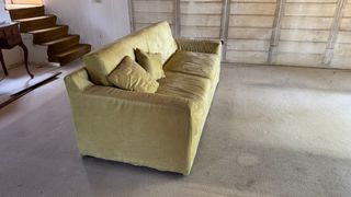 Comodo divano a 3 posti, perfetto per il soggiorno. Materiale alcantara Colore verde
