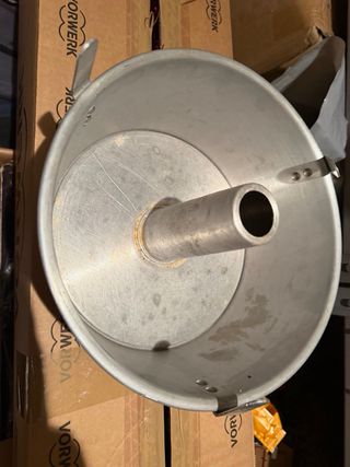 Inserto AMC in metallo, perfetto per pentole da 24cm. - Design in metallo lucido. - Manico per una facile presa. - Base forata per la cottura a vapore. Usata una volta, pari a nuovo