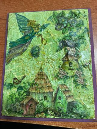 Fatta a mano con tecnica di decoupage. Elegante e fine nei suoi colori e disegni. Sia da appendere che da appoggio.