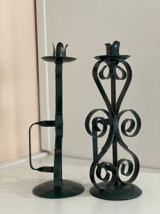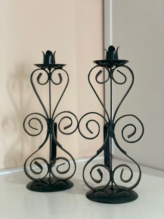 Eleganti portacandele in metallo dal design intricato. - Colore nero. - Materiale metallico.