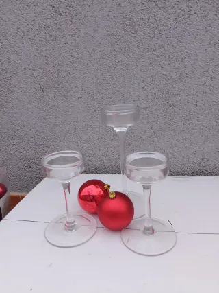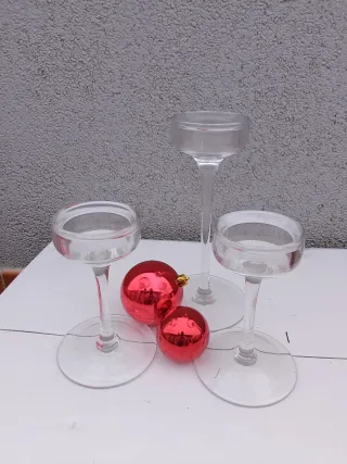 Set di lampadari in cristallo con decorazioni natalizie. - Tre lampadari in cristallo. - Due ornamenti sferici rossi. 10.00, per ogni candelabro
