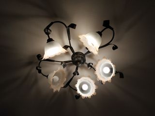 Elegante lampadario in porcellana, un vero pezzo d'arte per la tua casa. - Decorazioni floreali finemente lavorate. - Dettagli in oro. - Struttura a più bracci. Trattasi di 4 lampadari 2 a tre bracci e 2 a cinque. Il prezzo é di 500 per i tre bracci e 700 per i 5. Solo ritiro di persona