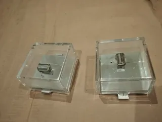 Elegante set di quattro lampadari in cristallo. - Design quadrato e moderno. - Base stabile e robusta. - Danno un tocco di raffinatezza a qualsiasi spazio. Dimensioni 25 cm x 2 e 15 cm x 2
