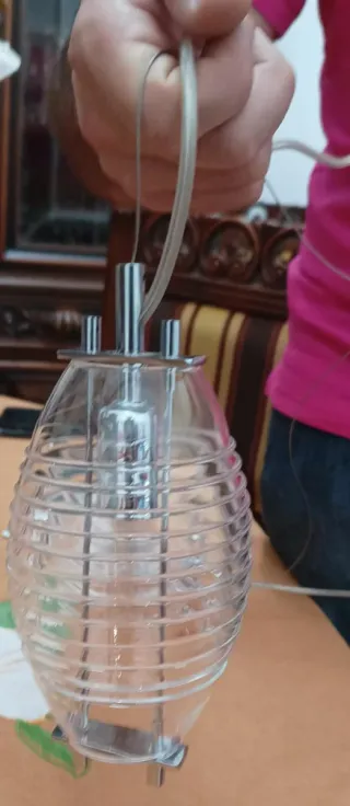 praticamente regalo 3 lampadari in vetro e acciaio da pulire, foto reali. 20 euro per tutte e tre i lampadari vendo a prezzo così basso solo perché devo svuotare il garage