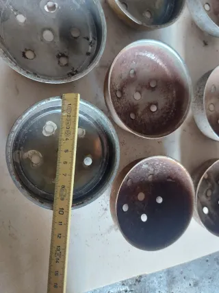 Set di sei coppette per lampadari in metallo. - Design a cono con finitura anticata. - Ideali per restauri o creazioni personalizzate. - adatti anche per fare dei portacandela o altri lavori stile industrial