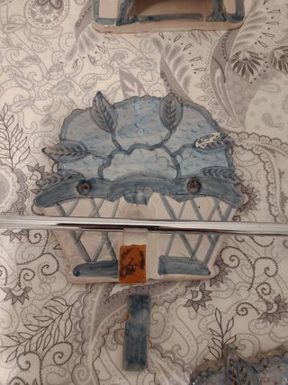 set di accessori da bagno in ceramica, dipinto a mano, con lampadari, un pezzo è attaccato, è il portasciugamani, quindi puoi usarne solo uno con un anello o attaccarlo