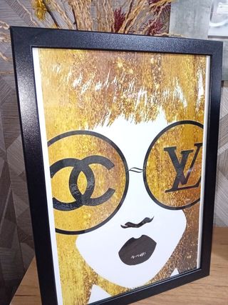 Bellissimo Quadro con lamina di una ragazza che indossa occhiali dorati Louis Vuitton e Chabel. Nel mio profilo ho altri quadri ideali per composizioni. Include lastra montata su vetro e cornice nera. Deve essere appeso. La cornice inclusa misura 46 cm di altezza x 34 cm di larghezza. Vedi altre cose nel mio profilo. Ho oggetti decorativi, mobili da bar, mensole, specchi, lampadari, frida, sedie Enea restaurate, sgabelli, pouf, portabottiglie, maschere africane, porte restaurate, quadri, mobili a fumetti, specchio a fumetti, cassetti restaurati, enea, shabby, rattan, giardino, fioriere, vintage, mobili castellani