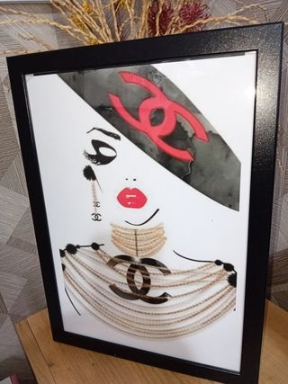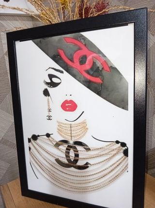 Bellissimo Quadro di una ragazza Chanel con cappello e collana di perle. Nel mio profilo ho altri quadri ideali per composizioni. Include lastra montata su vetro e cornice nera. Deve essere appeso. La cornice inclusa misura 46 cm di altezza x 34 cm di larghezza. Vedi altre cose nel mio profilo. Ho oggetti decorativi, mobili da bar, mensole, specchi, lampadari, frida, sedie enea restaurate, sgabelli, pouf, portabottiglie, maschere africane, porte restaurate, quadri, mobili a fumetti, specchi a fumetti, cassetti restaurati, enea, shabby, rattan, giardino, fioriere, mobili castigliani vintage e restaurati e altro ancora.
