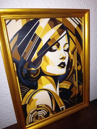 Quadro dorato con tela stampata su tela di una ragazza con una sigaretta. Include tessuto di tela montato su vetro e cornice dorata. Deve essere appoggiata e appesa. La cornice inclusa misura 32,5 cm e una larghezza di 23,5 cm. Vedi altre cose nel mio profilo. Ho oggetti decorativi come sedie restaurate, sedie enea, librerie, tavolini, specchi, shabby, chic, vintage, lampadari, appendiabiti, porte restaurate, maschere africane, molti quadri e altro ancora.