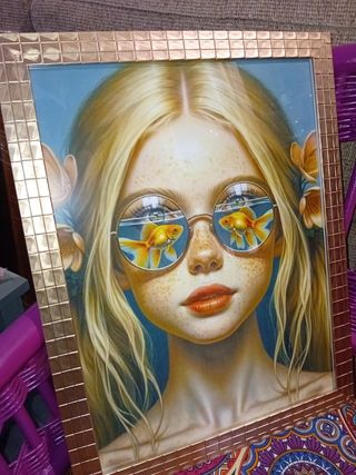 Quadro con lamina di ragazza lentigginosa con pesce. Nel mio profilo ho altri quadri ideali per composizioni. Include lastra montata su vetro e cornice dorata. Deve essere appeso. La cornice inclusa misura 44,5 cm di altezza x 34,5 cm di larghezza. Vedi altre cose nel mio profilo. Ho oggetti decorativi, mobili da bar, mensole, specchi, lampadari, frida, sedie enea restaurate, sgabelli, pouf, portabottiglie, maschere africane, porte restaurate, quadri, mobili comici, specchi a fumetti, cassetti restaurati, enea, shabby, rattan, giardino, fioriere, mobili castigliani vintage e restaurati e altro ancora.
